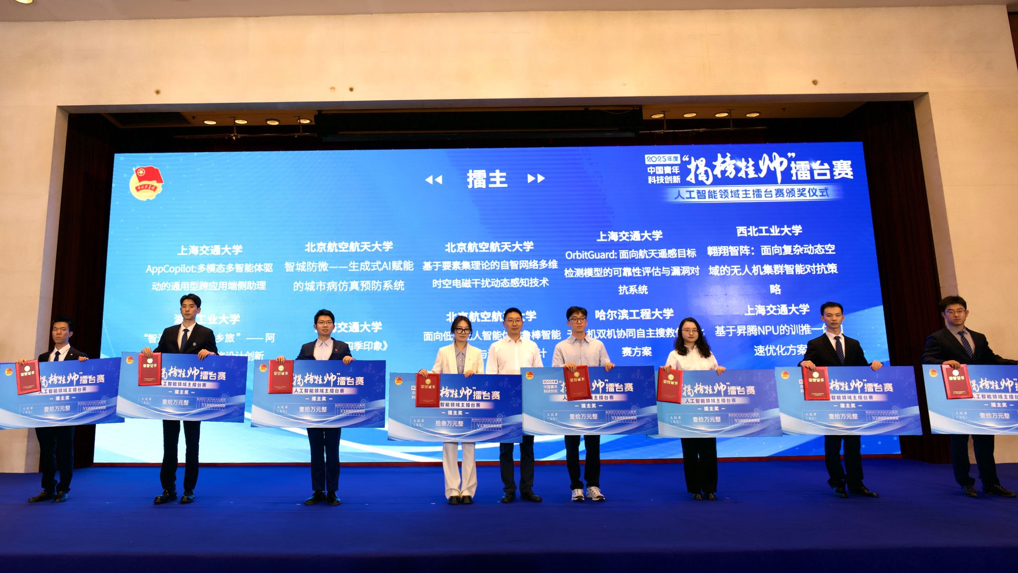 10月17日至20日,第十九届全国大学生“挑战杯”揭榜挂帅人工智能领域擂台赛在上海举行。经过激烈角逐,湖工大学子再夺全国擂主(特等奖第一名)1项,这是学校在今年“挑战杯”揭榜挂帅擂台赛中获评的第2个擂主。在本次比赛中,学校共斩获特等奖2项,一等奖2项等十余项国家级荣誉,是学校参加“挑战杯”揭榜挂帅擂台赛成绩最好的领域。