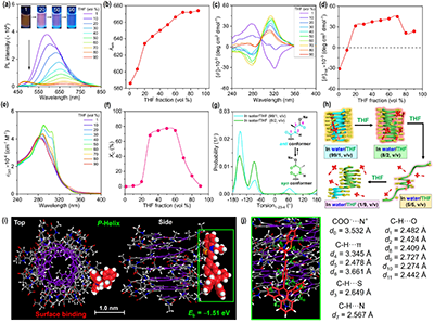 图3 折叠体在水/四氢呋喃混合溶剂中螺旋反转的荧光可视化