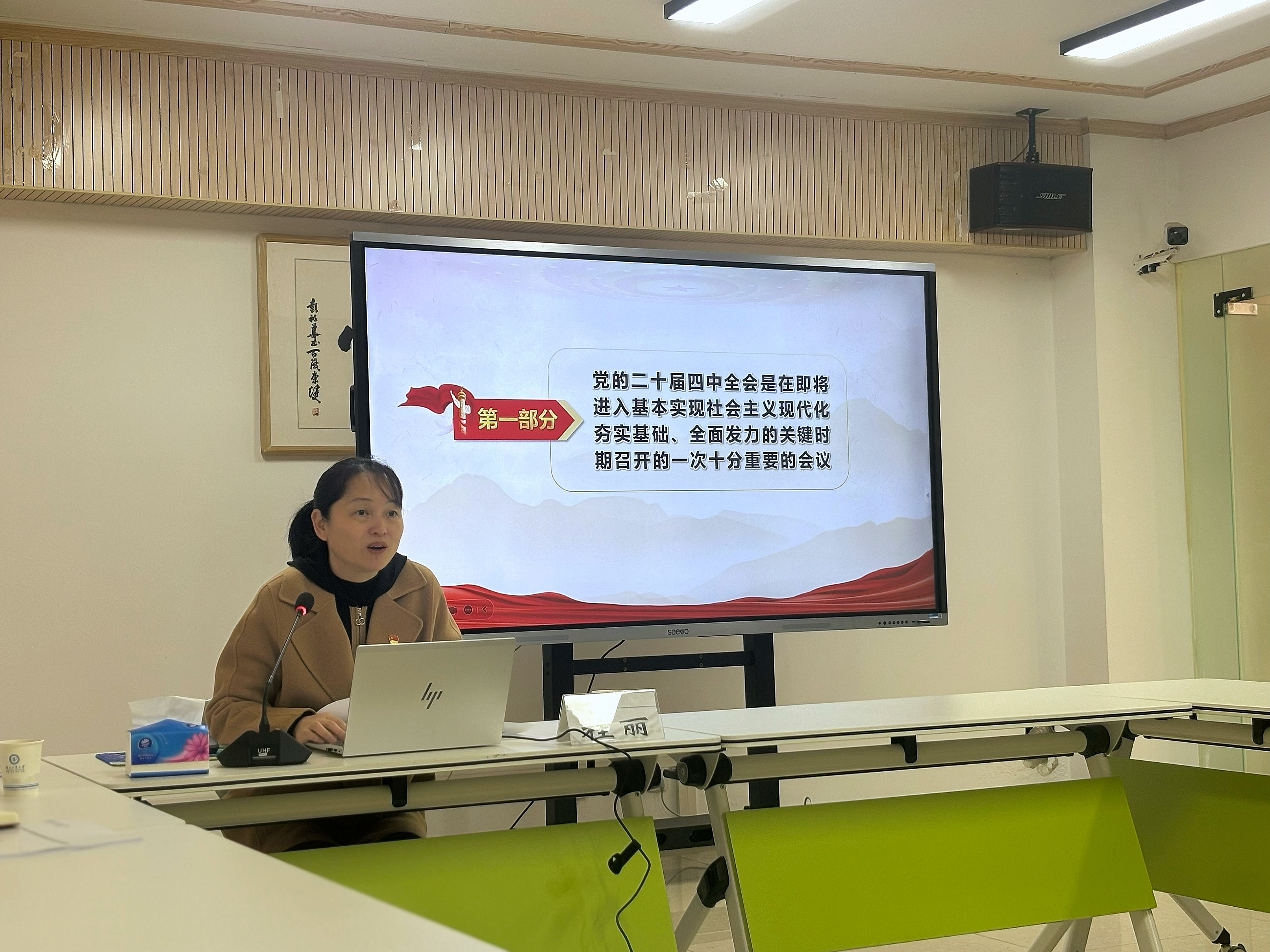 12月11日上午,校党委副书记、副校长桂丽走进一站式学生社区公共服务中心,为学工部党支部全体党员开展党的二十届四中全会精神专题宣讲。学工部部长任卫华主持本次学习会。