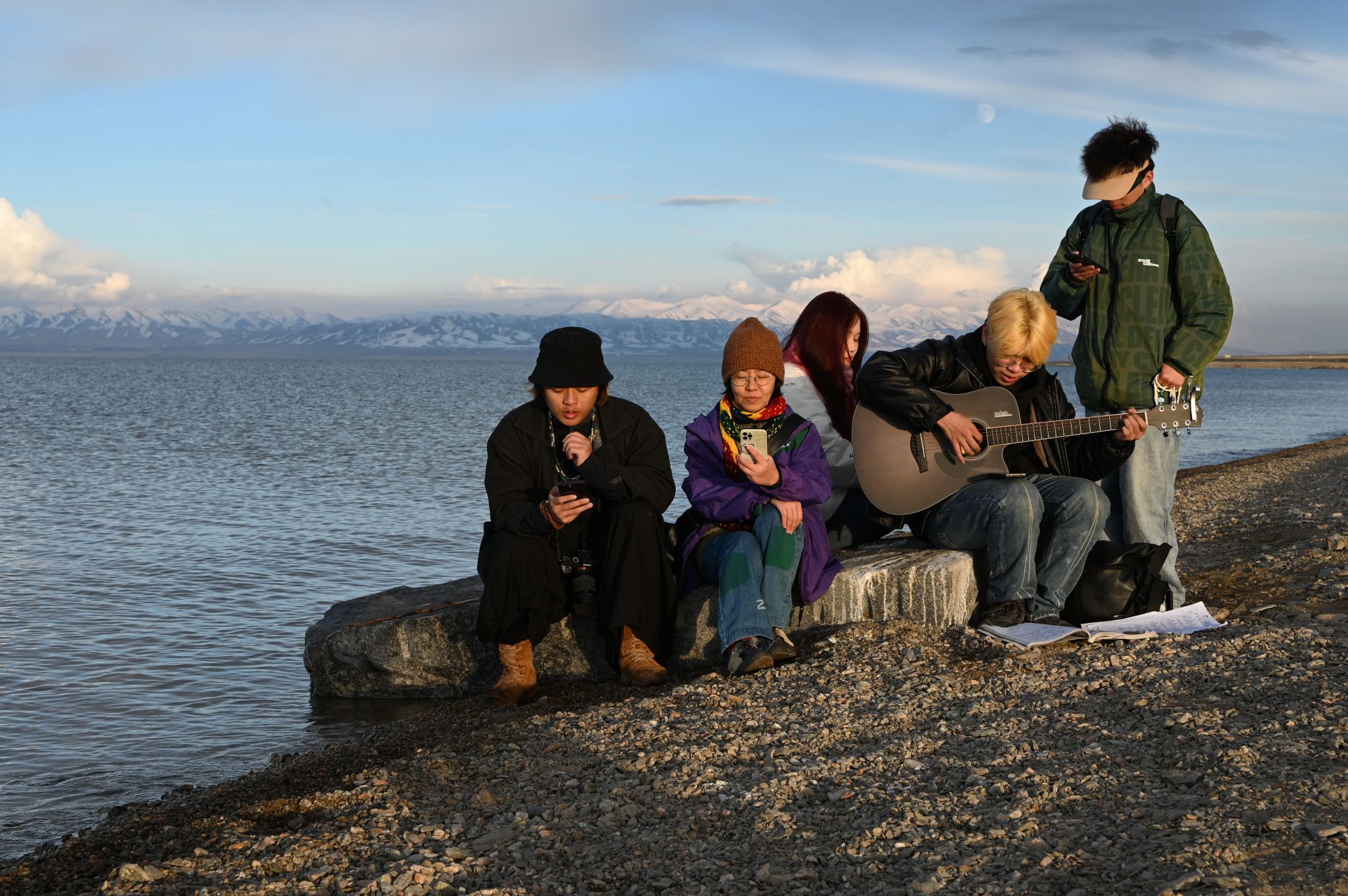 去年10月,李海冰和学生去西北考察,在青海湖边一起唱歌