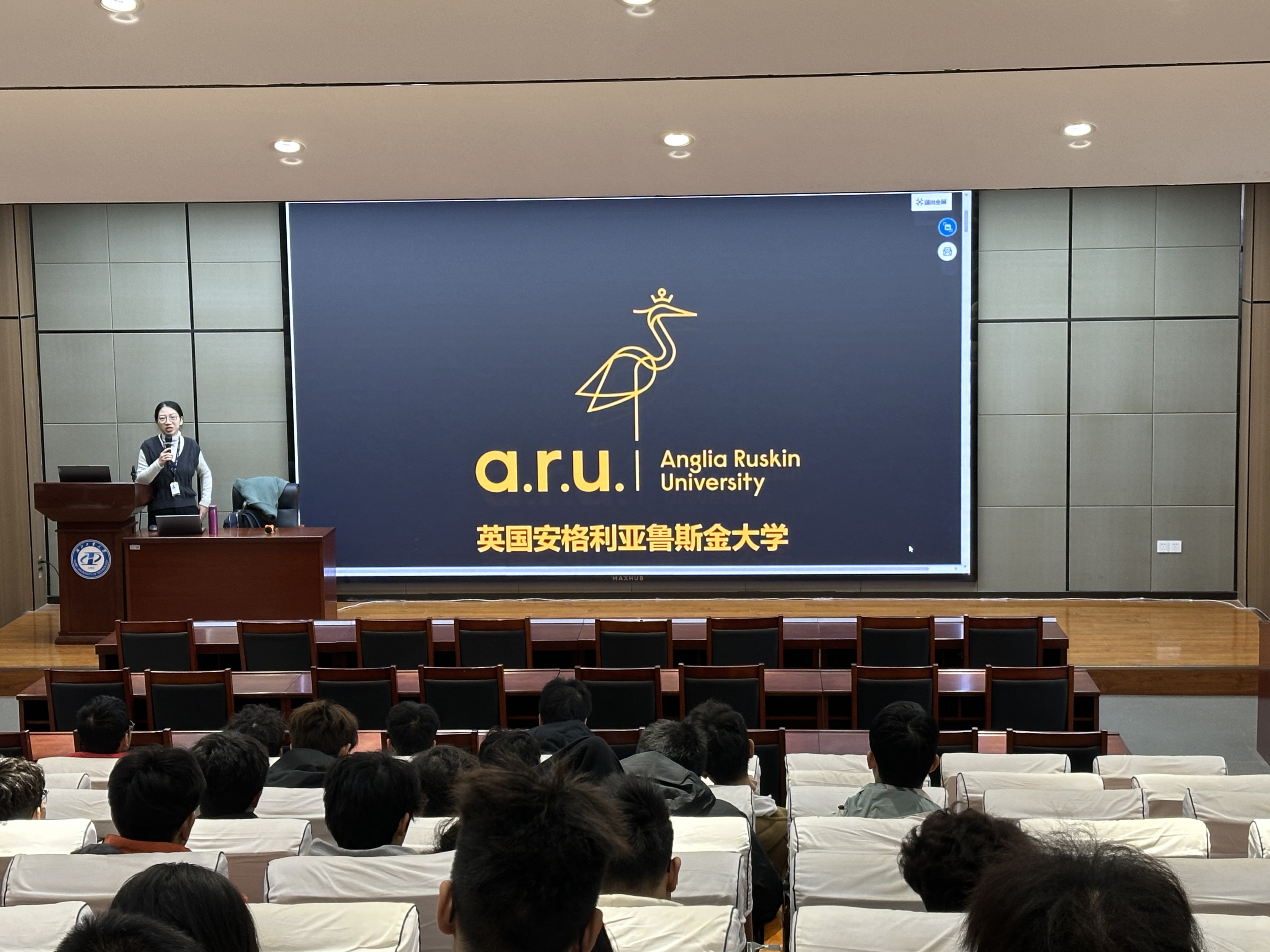当天下午,朱飞霏老师组织中英合作项目中有出国意愿的大二、大三年级学生召开出国说明会,就ARU专业课程设置、教学模式、人才培养机制、创新创业支持及申硕优势等内容进行了详细介绍与现场答疑,并建议学生在出国前注重培养独立生活与适应能力。