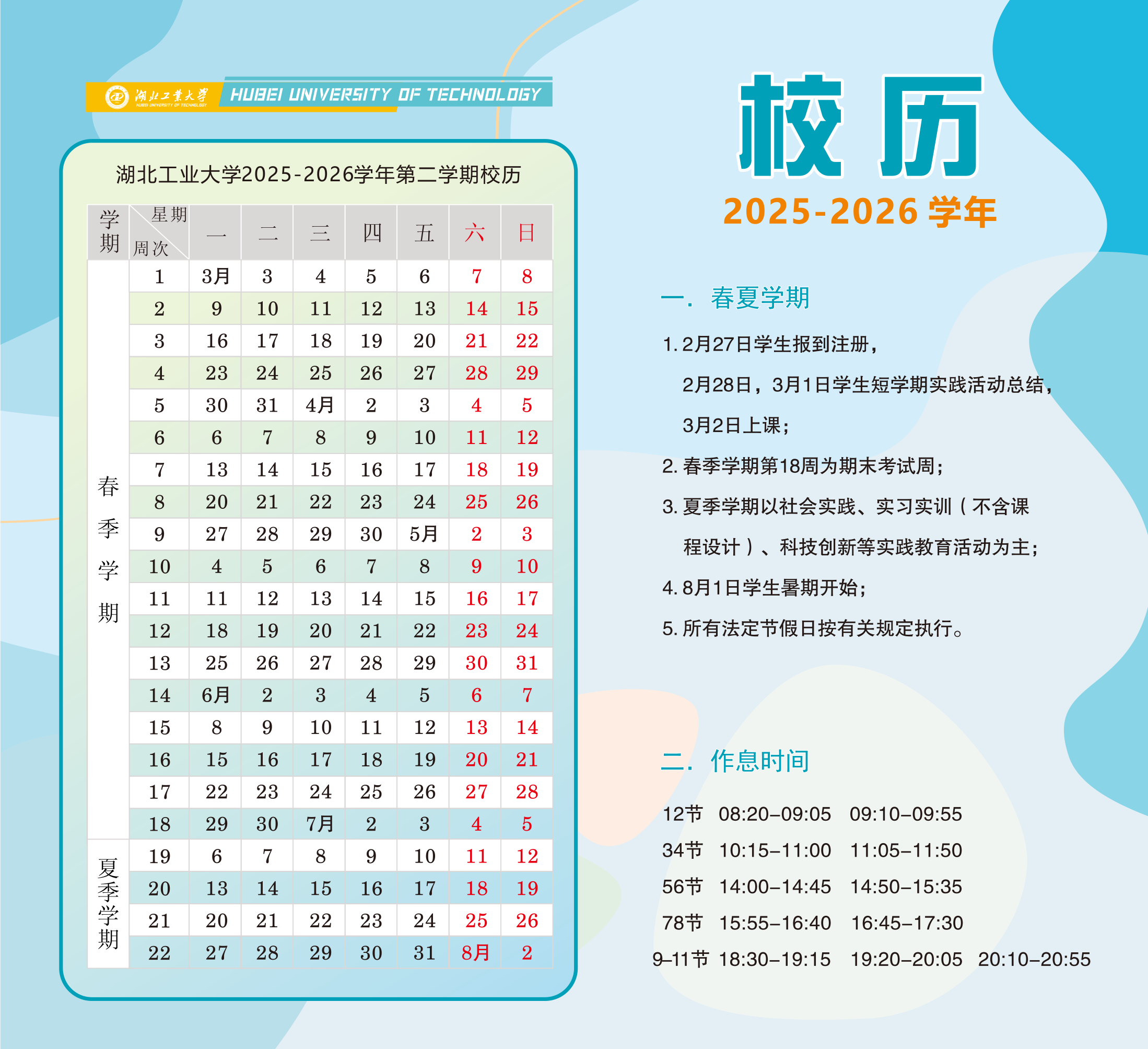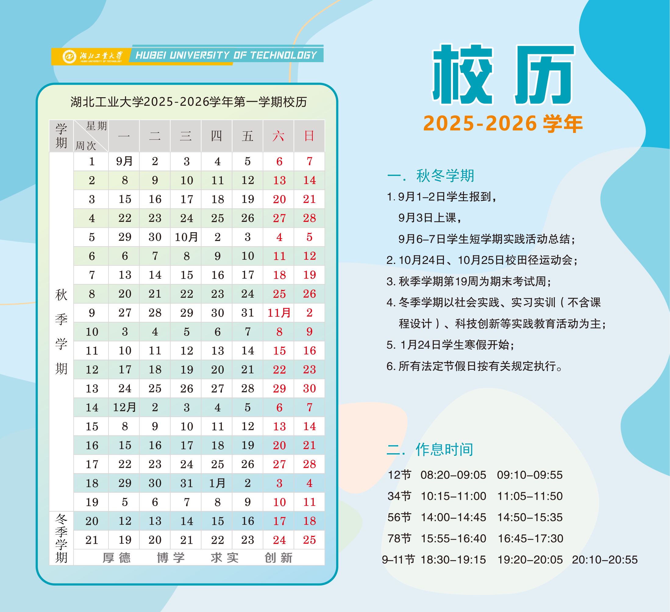 湖北工业大学2025-2026学年校历